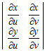 面積要素は|det(J)|倍になる.ヤコビアンの絶対値を|det(J)|で表すと |det(J)|=|−| f(x,y)dxdy=f(x(u,v),y(u,v))|det(J)|dudv