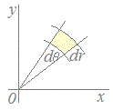 だから =cosθ, =−rsinθ =sinθ, =rcosθ det(J)=cosθ·rcosθ−(−rsinθ)·sinθ =rcos2θ+rsin2θ=r (>0) したがって f(x,y)dxdy=f(x(r,θ),y(r,θ))·r·drdθ |