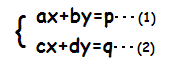 (ア) Δ=ad−bc≠0のとき,ただ一つの解を持ち, i) (1)//(2)のとき 解なし |