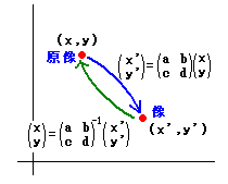 == 点の像と原像 == ■1次変換 =![]() によって点(x,y)が点(x’,y’)に移されるとき,