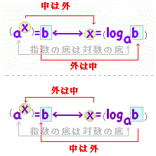 ![]() また,次のように「対数にする」変形もよく使います。 2 = 2log22 = log24 |