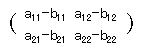 ●行列の和 ・2つの行列の型が一致するとき,行列の和を次のように定義します。 2×2行列での例 A+B= ・2つの行列の型が一致するとき,行列の差を次のように定義します。 2×2行列での例 A-B= ●行列の実数倍 ・行列のt倍は,各成分をt倍した行列とします。 2×2行列での例 |