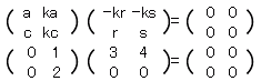零因子の作り方のところにある文字の行列式で、(a,b)を(a,ka)とおくのは大丈夫ですが、(p,r)を(-kr,r)とおくのはなぜなんでしょうか?(a,ka)のように、y座標のとこよに、x座標に傾きをかけた値がくるのではないでしょうか?