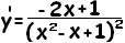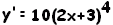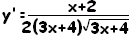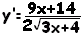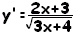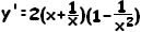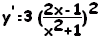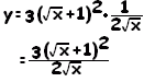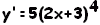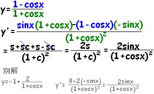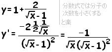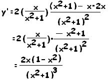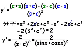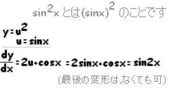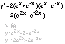 y=(x2+1)(x2+3) のときy’を求めなさい。 [答案例] y’=(2x)(x2+3)+(x2+1)2x=4x3+8x・・答 ※ この問題では展開してから微分することも考えられます。 y=x4+4x2+3 y’=4x3+8x・・答