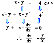 例 x2+y2=4のとき,x=1→yは2つ,y’も2つ ![]() 例 xy=4のとき、x=2→yは1つ,y’も1つ ![]() |