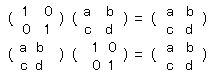 ●正方行列のうち対角成分(ここでは主対角線上の成分:行番号と列番号が同じもの)が1で,他の成分が0となる行列を単位行列といい,型を混同するおそれがなければすべてEで表します。