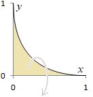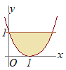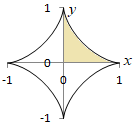 x軸,y軸に関して対称な図形だから,第1象限の部分を回転して2倍する.