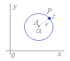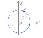 (2) 動点P(z)が方程式|z|=r (r>0) を満たすとき,点P(z)は原点を中心とする半径rの円周上にある.