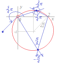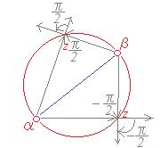 このような計算を目で追っていくのはそれなりに苦痛である.複素数の偏角を考えると,もっと少ない計算量でできる.