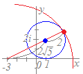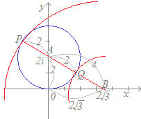 |−i2z−3i|=|2z−6| |z−3i|=2|z−3| 2定点3i, 3からの距離の比が2:1である点の軌跡はアポロニウスの円になる. 3i, 3を2:1に内分する点は 3i, 3を2:1に外分する点は これらの中点が円の中心になる 半径は (別解: したがって, 中心が4−iで半径が |