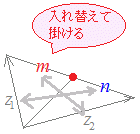 ※外分比が等しいとき(すなわちm=nのとき ⇒ 1:1, 2:2など)は,分母が0となって,「おかしい」ことがわかる.A(z1), B(z2), P(z)とおくと, z=z1+(z1−z2 )= == 図3の場合はmの方が大きくなり,図4の場合はnの方が大きくなり,どちらの場合でもmとnが等しくなることはない. このように,1:1の外分だけはない. |