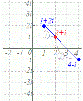 2点z1=1+2i,z2=4−iを1:2に内分する点を表す複素数は z===2+i 図は次の通り ![]() |