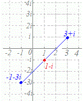 2点z1=−1−3i,z2=3+iの中点を表す複素数は z===1−i 図は次の通り ![]() |