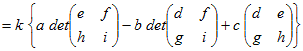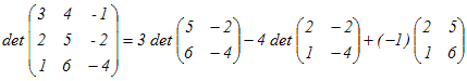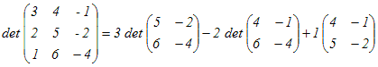 ![]() =3(−20+12)−2(−16+6)+(−8+5)=−24+20−3=−7 ※ 各成分aijに対して