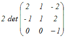 「代数」→「行列式の計算」を選択すると −2 が出力される ※wxMaximaで記号定数πは %pi,eは %e,根号 |
