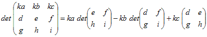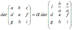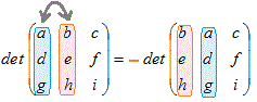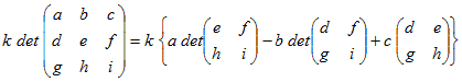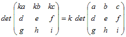 (1) 行列の1つの行(または1つの列)を定数k倍すると行列式はk倍になる. ![]() ![]() ![]() ![]() |