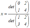 OKとする.列数:2 タイプ:一般 変数名:A 成分を 1 2 3 4 と入力する(タブキーが使える)OK (2) 上で入力した行列に対して行列式の値を求める