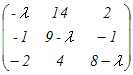 =0⇔ (1−λ)(−4−λ)+6=0 ⇔ λ2+3λ+2=0 ⇔ λ=−1, −2