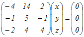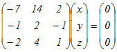(*4)−(*5) 2z=(y) ⇔ x=5t, y=2t, z=t ⇔ (x, y, z)=t(5, 2, 1)