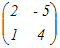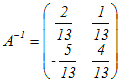 行列a12=−の余因子はA12=−5 a21=−の余因子はA21=−(−1)=1 a22=−の余因子はA22=4 の転置行列が余因子行列![]() これをdet(A)=4 · 2−5·(−1)=13で割ると …(答) |
