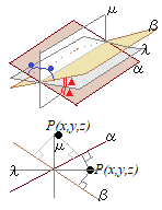 2. 2平面の交線の方程式 3. 直線と点を含む平面の方程式 4. 直線1を含み直線2と平行な平面の方程式 (交わる2直線を含む平面の方程式)