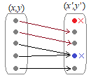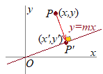 (別解3) 直線の方程式: は,次の形に書ける これを行列で書けば 変換式には逆変換が存在するからこれを利用できる. (2)を(1)に代入すれば,x’, y’の関係式が得られる 変数を |