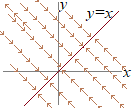 (2) 元の方程式を媒介変数表示で表すと @) これを に代入すると 媒介変数を消去すると 変数を A) これを に代入すると 変数を ※[#1][#2]の結果は,[#1]と整合的になっている.すなわち,平面全体が直線 (3) 変換式 新座標の方程式 から新座標を消去して旧座標の方程式にすると |