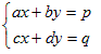 連立方程式 cx+dy=q は,行列を使って と書けるので,Aに逆行列A−1が存在する限り により直ちに解けます.