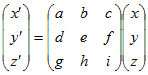 (6) 3次元のベクトルR3から3次元のベクトルR3への写像:[3次元空間内の点の移動 (x,y,z) → (x’,y’,z’)]