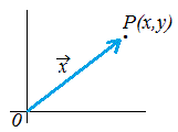 例ベクトル=(x, y) や点P(x, y)を と書く.※ 原点を始点としてベクトルを描けば[=位置ベクトルとして使えば]ベクトルの成分と終点の座標は一致するので,「ベクトル」と「点」は同じように扱える. ![]() は を表す.例 は を表す. |