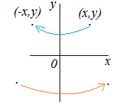 ※ x軸に関する対称移動を行ってからy軸に関する対称移動を行うと原点に関する対称移動になる. ⇔
