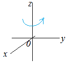(1) x座標は変わらず(5)の結果を用いてy , z座標について回転を考えるとよい. (2)(3)も同様 例 z軸のまわりに角π/4(45°)だけ回転させる1次変換の行列は ![]() |