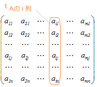 行列Aの行と列を入れ替えてできる行列を行列Aの転置行列といいtAで表す. 例 行列A= の転置行列はtA=