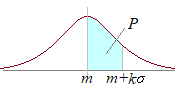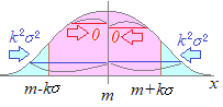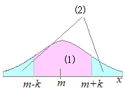 |X−m|>kを満たす確率をP(|X−m|>k)で表すと あるいは,変数Xの値が|X−m|≦kσを満たす確率をP(|X−m|≦kσ)で表すと