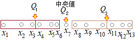 (2) 小さい方の組の5個のうちで,3番目(=3)を第1四分位数とする. 大きい方の組の5個のうちで,小さい方から3番目(=7)を第3四分位数とする. (3) 最小値は2, 最大値は9 ・・・(答)