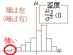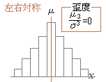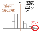 《与えられたデータ自体を母集団と見なす場合》 変数を標準化して求められる3次の中心モーメントは,歪度と呼ばれ,非対称性の度合いを表す.