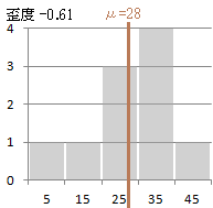 Excelのワークシート関数skew()は,上記(7.1)の推測統計の値になります.[skewness:歪度]《与えられたデータを標本として母集団の値を推定する場合》 Excelで[データ]→[データ分析]→[基本統計量]と進むと,歪度や尖度の値が出力されます.