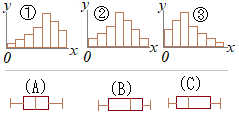 右図の度数分布表@ABに対応する箱ひげ図を,下の(A)(B)(C)から選んでください.
