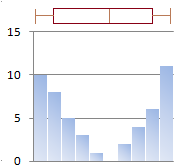 四分位範囲は6.6−2.1=4.5で,第3四分位数+1.5×四分位範囲=13.35>7.5だから,上側の外れ値はない.第1四分位数−1.5×四分位範囲=−4.65<0.1だから,下側の外れ値もない.尖度−1.15<5だから尖度の基準で外れ値はない. |