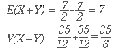V(u) = E(u2)-E(u)2 = 35÷24 - 0.0422 = 1.457 E(X) = 155.0 + 10×0.042=155.4 V(X) = 102×1.457=145.7 |