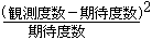 (解答) 「帰無仮説:H0 さいころは正しく作られている. 対立仮説:H1 さいころは正しく作られていない.」とする. 帰無仮説を元に期待度数を計算すると,正しく作られたさいころは各目の出る確率が等しいから,期待度数は各々100となる.