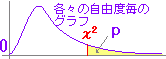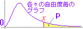 ■Excelの利用■(解説) ○ CHIDIST(カイ2乗値, 自由度) 右図のようなχ2分布関数[chi-square distribution]において,正の数xと自由度を指定したとき,P(X≧x)となる確率を返す. 次のχ2分布表との関係では,