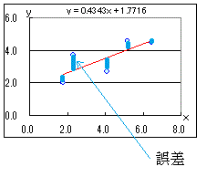 ※変数x=3.5に対する変数yの予測値は3.29になる. |