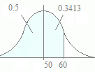 【例3】=NORMDIST(60 , 50 , 10 ,1) とすると0.8413が返されます. |