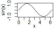 【例】 curve(sin(x),0,2*pi) #高水準作図関数でグラフを描く@ axis(1, at=0:7, pos=0) #座標軸を描くA ![]() --図5-- ![]() --図6-- 図5のように,@の段階で既に外枠に目盛りが付いているので,これにAの座標軸を上書きすると,図6のように目盛りが二重になる. ![]() --図7-- このように,高水準作図関数curve()やplot()の側で,名前付き引数xaxt="n", yaxt="n"を指定しておいてから,目盛り付き座標軸を表示する低水準作図関数axia()を書き込むと目盛りが重複しなくなる. |
