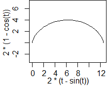 plot(2*(t-sin(t)),2*(1-cos(t)),type="l",asp=1)