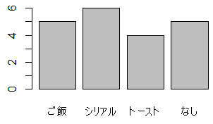 度数分布表と棒グラフ20人の生徒の朝食が,次のようになっていたとする.パン,ご飯,シリアル,なし,シリアル,なし,ご飯,シリアル,