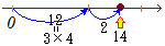掛け算(*)は足し算(+)よりも優先順位が高いので,先に3*4→12の計算を行い,次に2+12→14となる