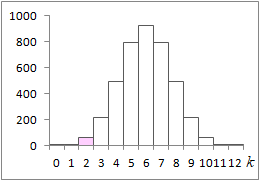 例えば,k=2(10円硬貨を12回投げて,ちょうど2回表が出る)となる確率は,