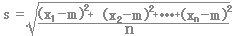 | (単純)標準偏差の計算 =STDEVP(範囲) (不偏)標準偏差の計算 =STDEV(範囲) なお,蛇足ながらこの関数を利用せずにΣ(xk - m)2 から定義に従って計算するときは,平均(期待値)mは標本の大きさnで割ることに注意 正の平方根の計算 =SQRT(セルまたは値) |